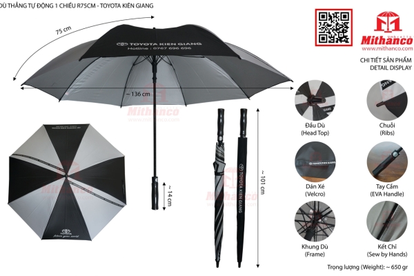 Diện tích tán rộng cho phép in logo, slogan hoặc thông tin liên hệ. Đây là hình thức quảng bá thụ động nhưng hiệu quả liên tục mỗi ngày.