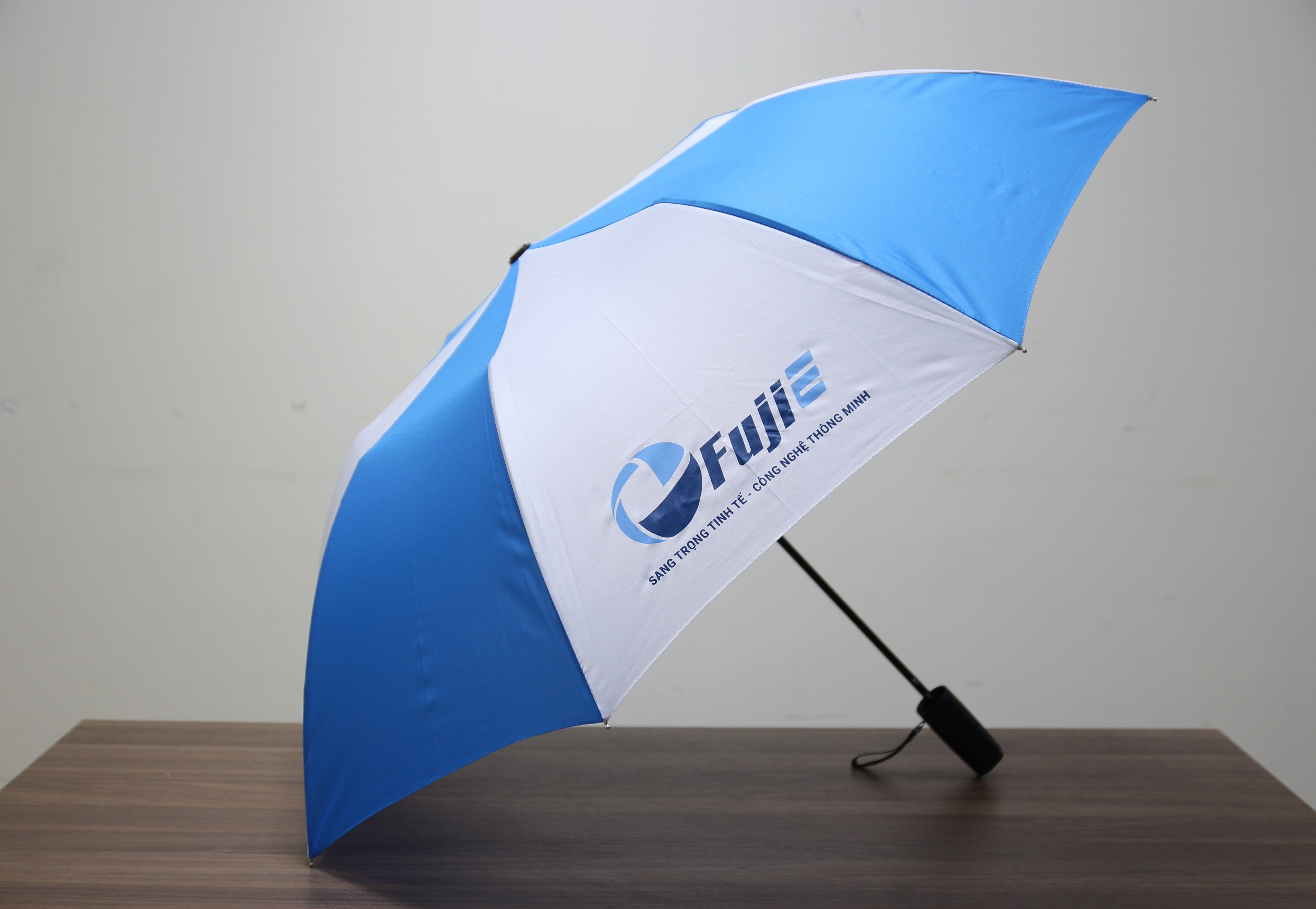 Với diện tích in lớn, dù cán thẳng giúp logo hiển thị rõ ràng, phù hợp cho các chương trình khai trương, roadshow, activation ngoài trời.
